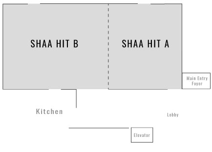 This large conference room (64′ x 26′) can accommodate over 200 participants. It can also be divided to accommodate smaller groups with ease (Shaa hit A = 25’x26′, Shaa Hit B = 39’x26′, and Shaa Hit C = 40’x15,). All our rooms have full audio and video capabilities.