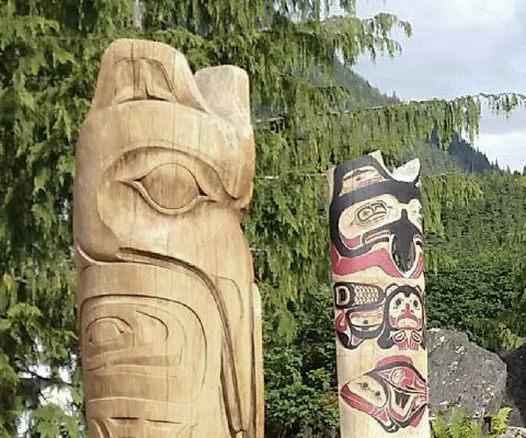 Cape Fox Lodge has an in-house museum that celebrates the Tlingit culture on two floors. Private tours are available on request. With a striking mountainous backdrop, the imposing “Council of the Clans” totem exhibit guards the Lodge’s front entry. The Lodge’s vistas are unmatched in Ketchikan and can be enjoyed from your room, the lobby, and the Heen Kahidi Dining Room. Don’t forget to stop in the gift shop in the lobby. You’ll find original and unique works of art.